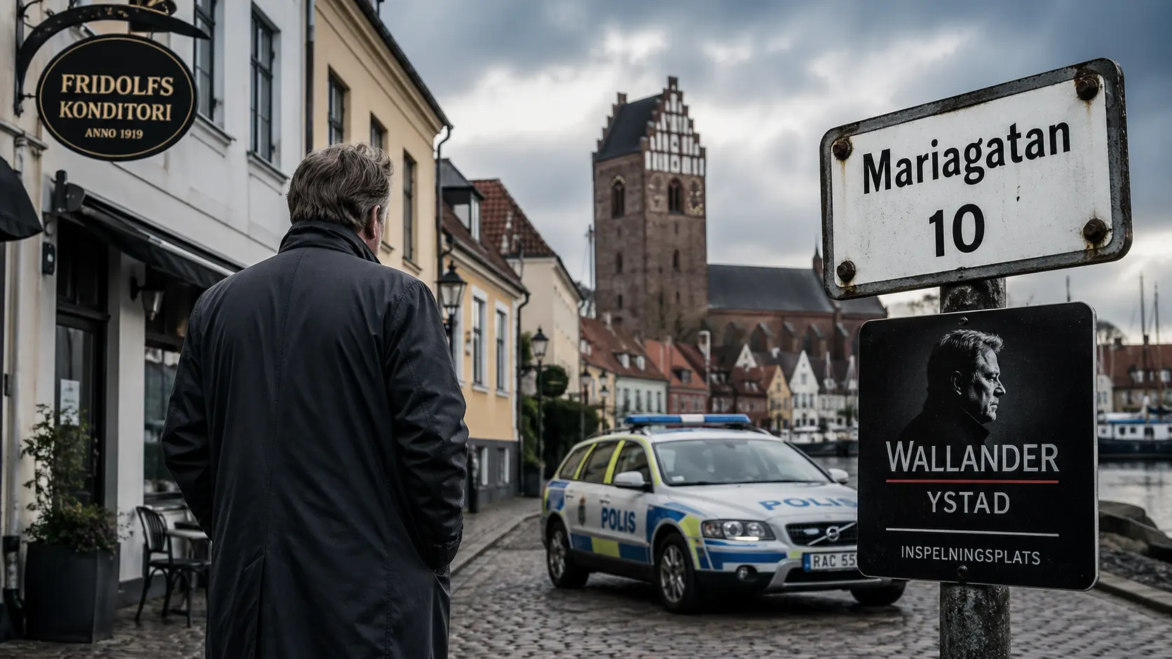 För fans av serien finns flera välkända stopp i Ystad. Fridolfs Konditori är ett av de mest klassiska, eftersom det ofta syns i filmerna och är Wallanders återkommande fikaställe. Här kan du sätta dig ner och uppleva samma miljö som i serien.